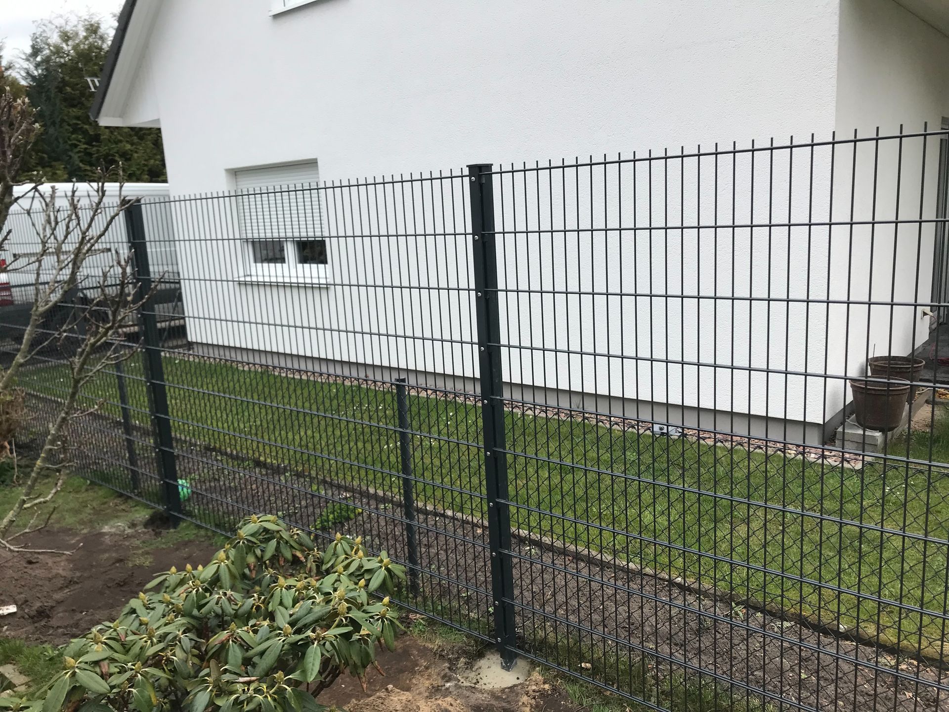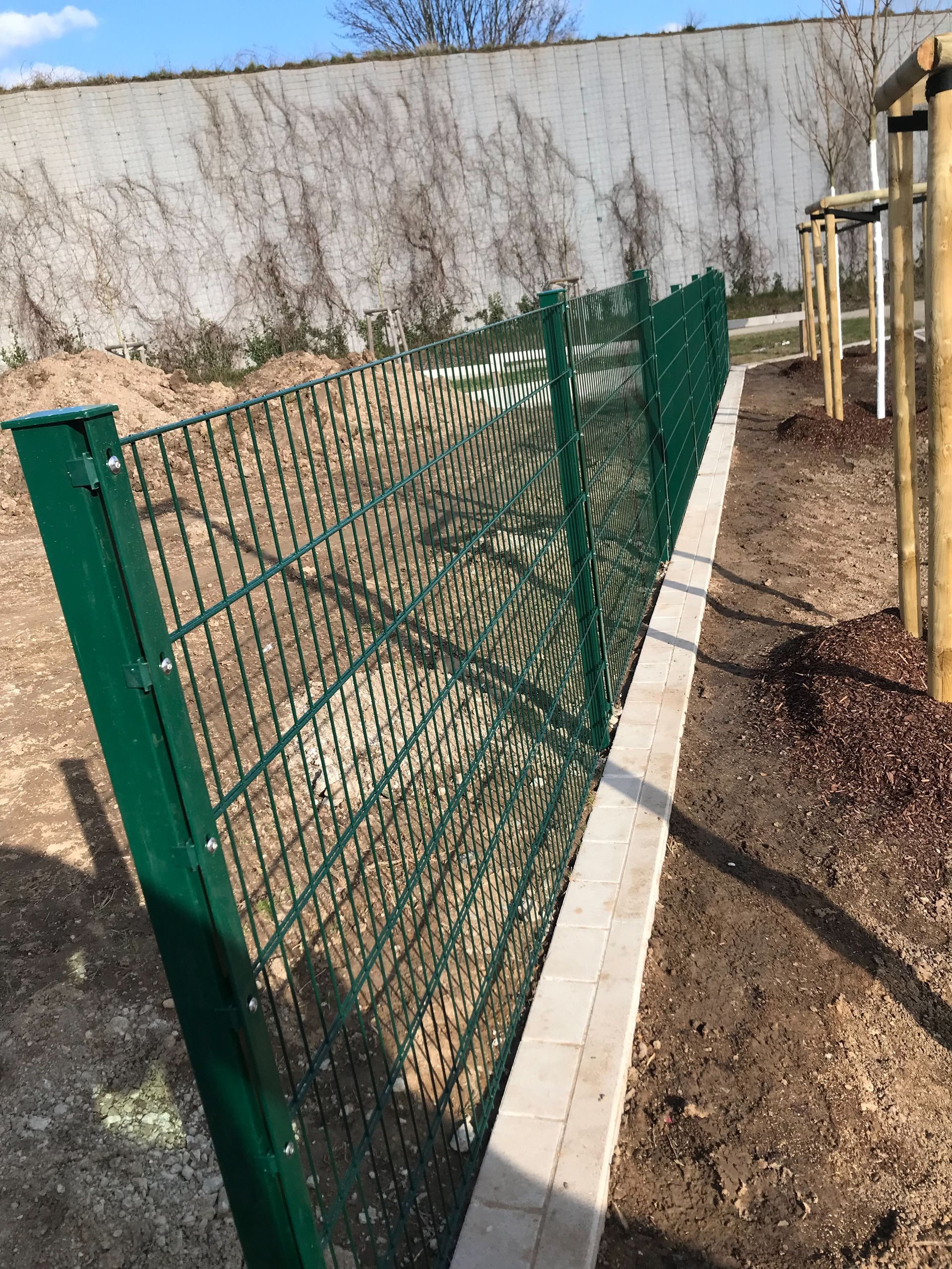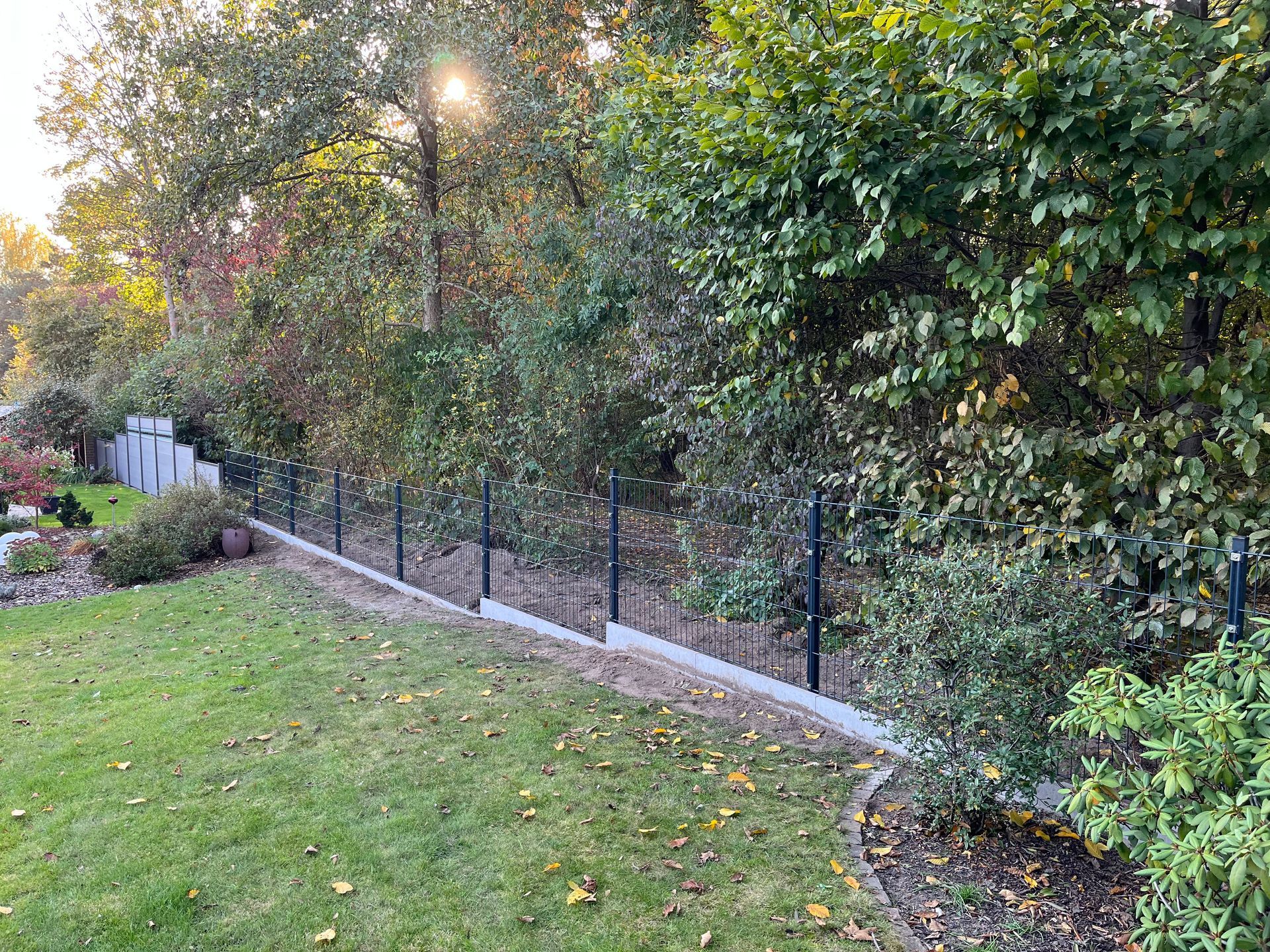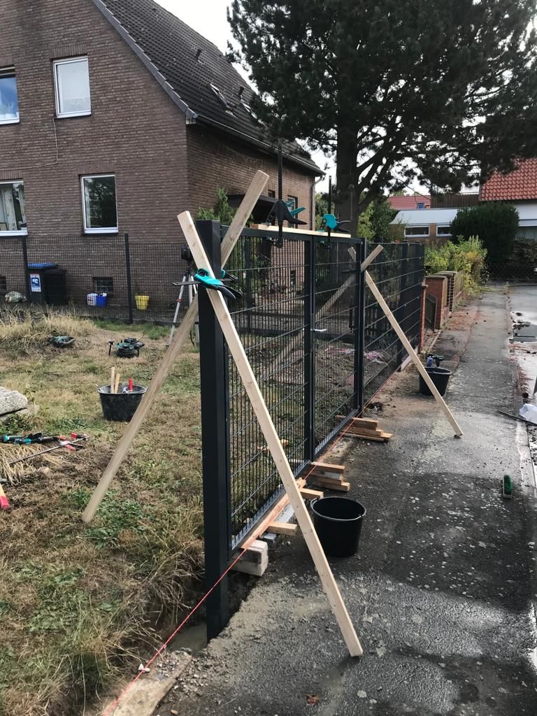 Aluminiumsichtschutzzaun mit Einzeltor und aufgeschraubter Zackenleisten um Übersteigen zu erschweren