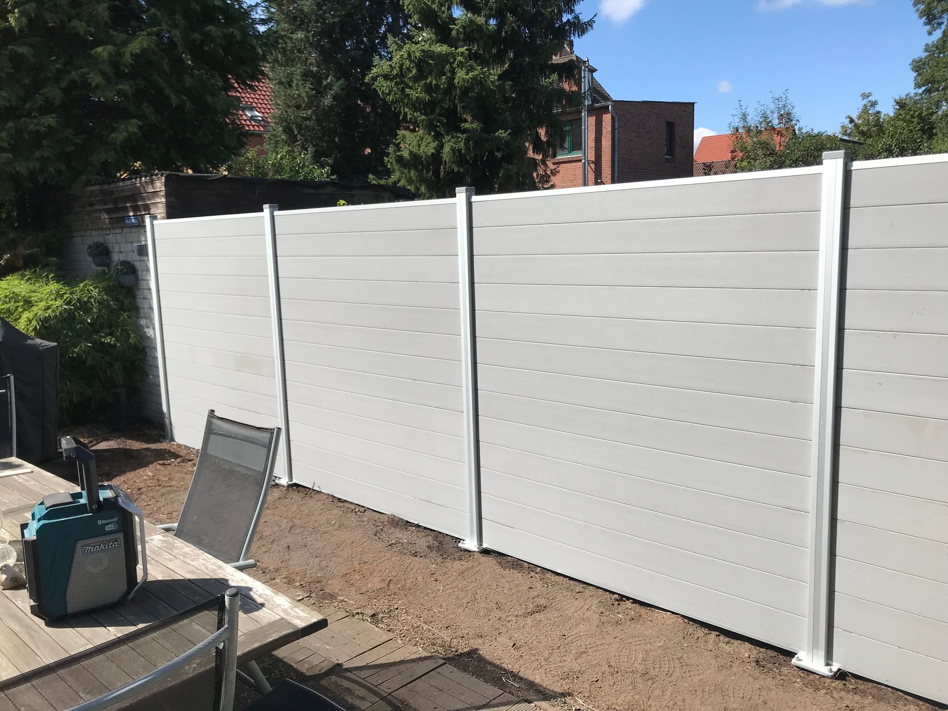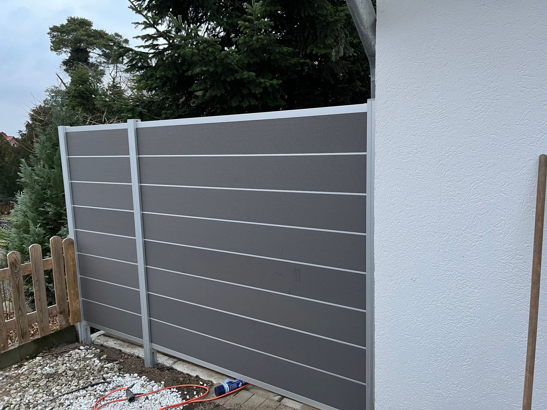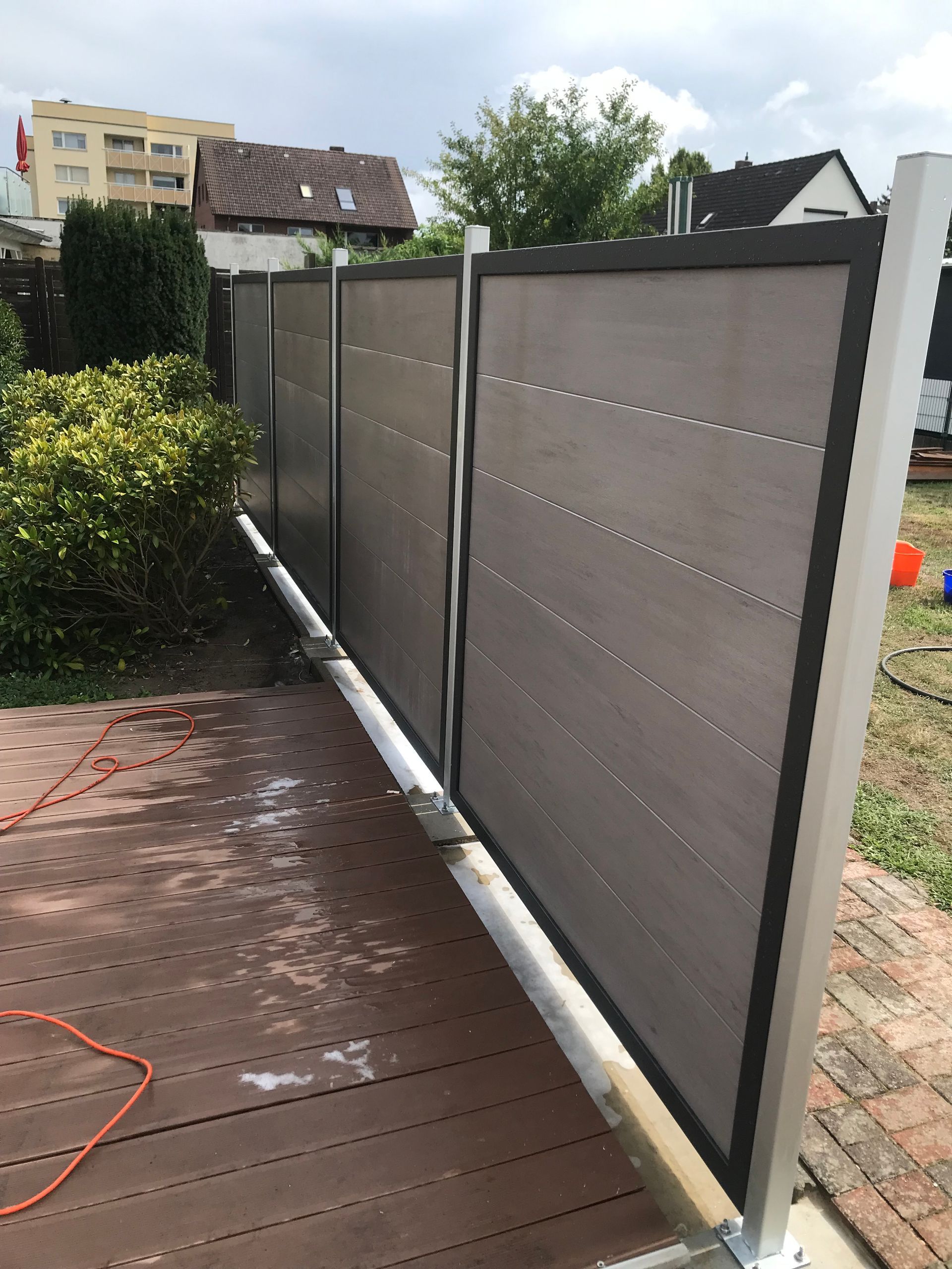 Als Terrassenabtrennung mit Premium Sichtschutz in Grau