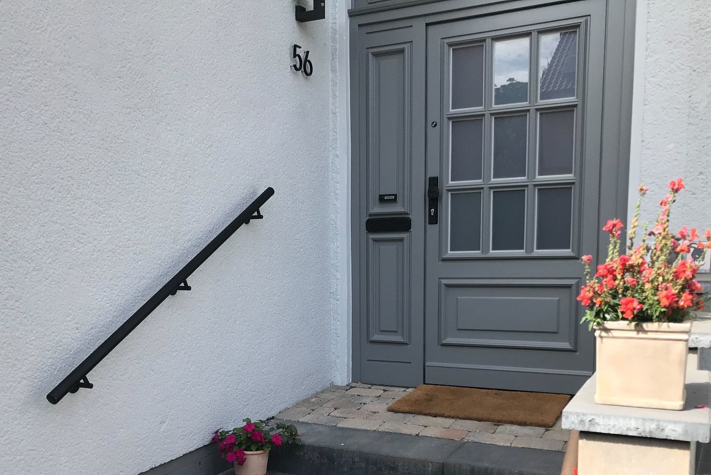 Gartenmauer zur Abgrenzung einer Treppe im Eingangsbereich